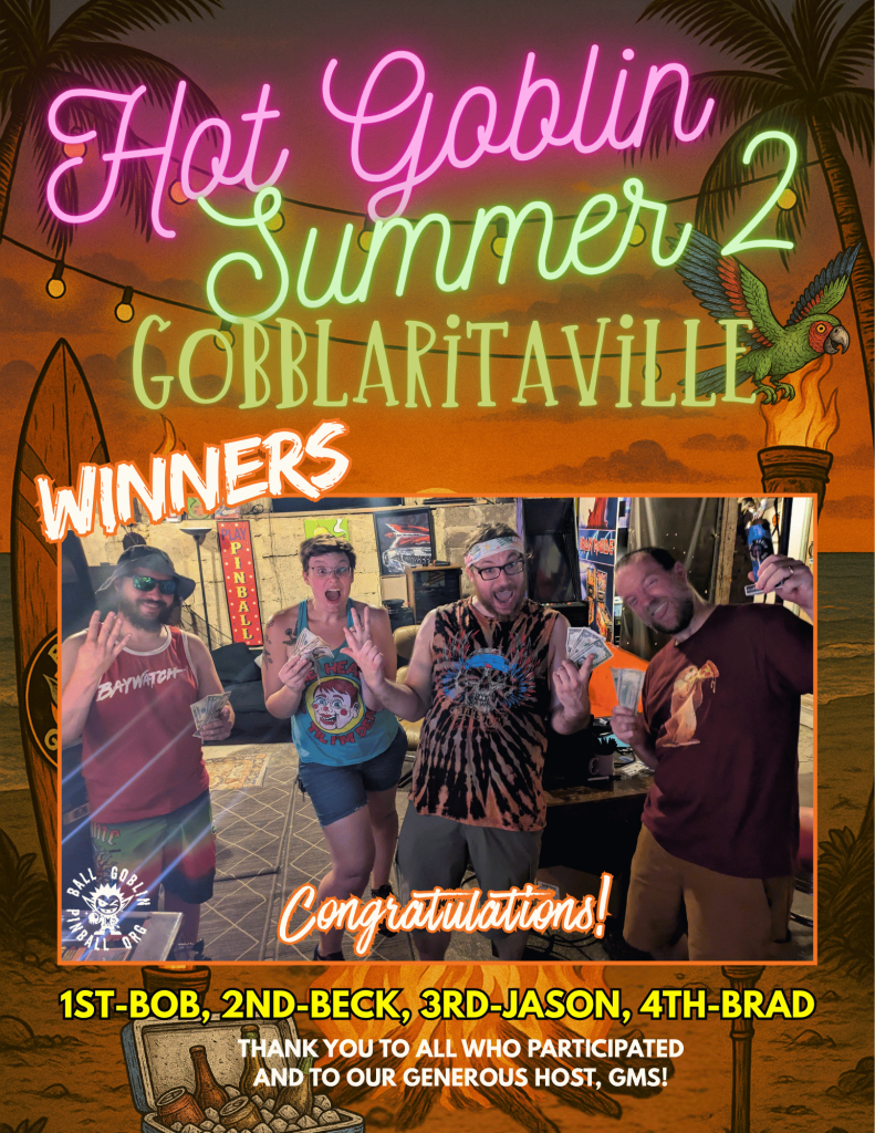 Ball Goblin Pinball Org runs a variety of co-ed tournaments throughout the year on Friday nights and Saturday afternoons at GMS. Our annual high stakes tournaments you don’t want to miss are HOT GOBLIN SUMMER and GOBTOBERFEST! We offer other tournaments as well, such as Five Dollar Friday Flips, Split Flipper, EM, etc. We will note in the advertising if tournaments are IFPA sanctioned or not. Formats will vary.
